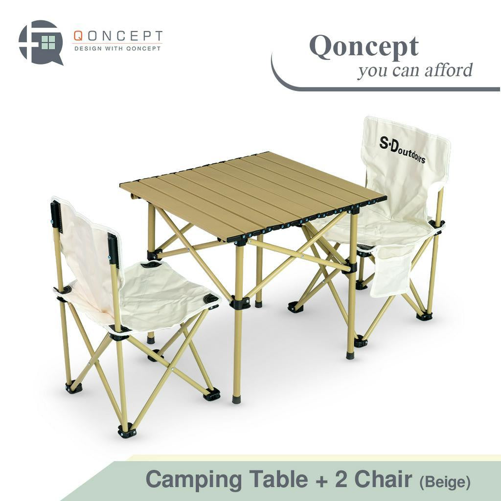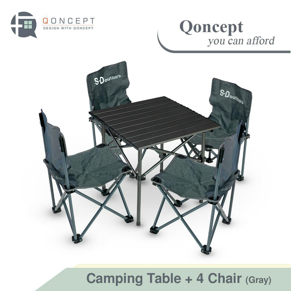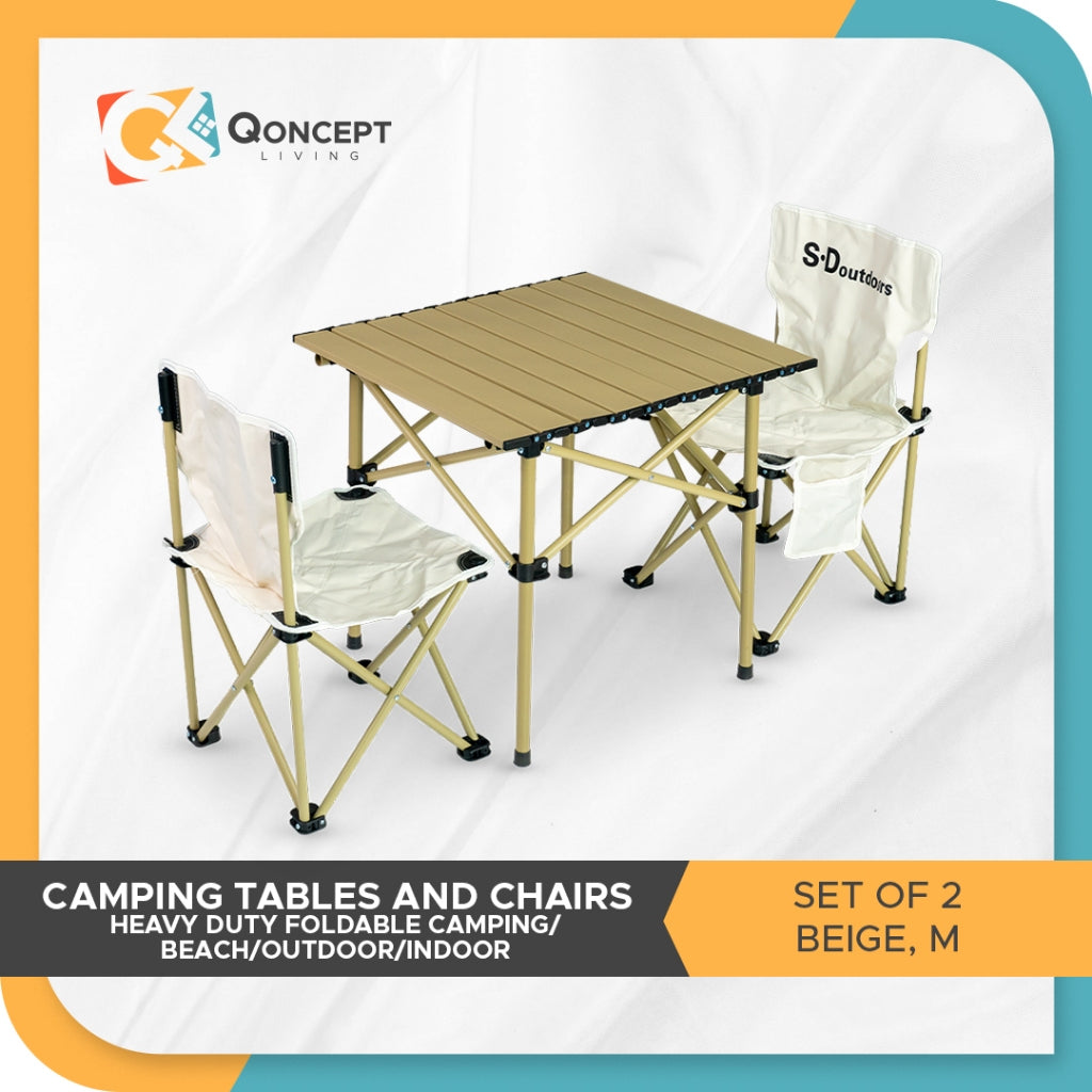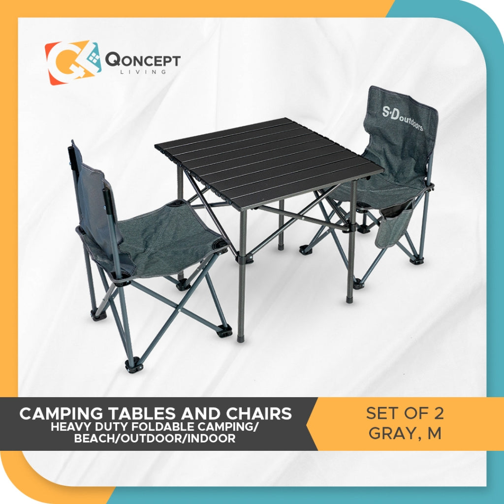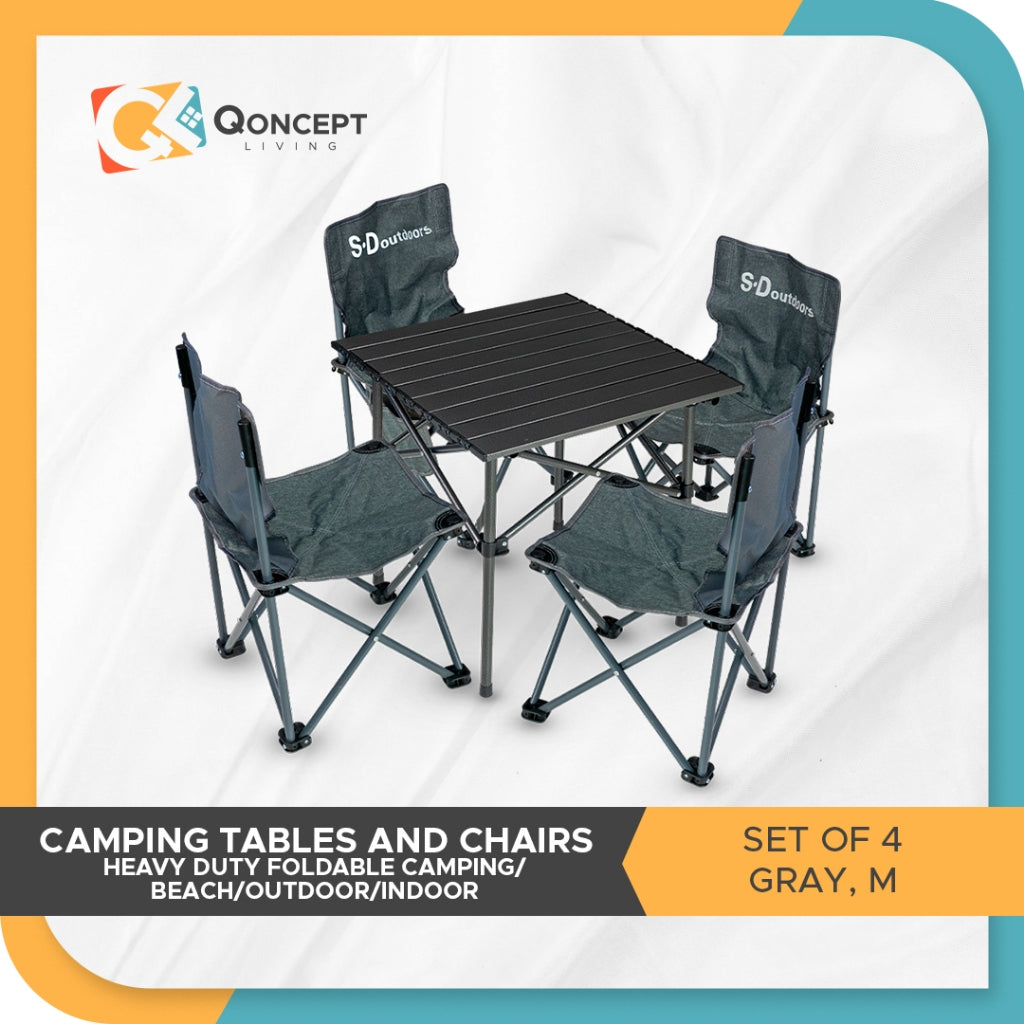 Qoncept Camping Tables and Chairs Heavy Duty Foldable Camping/Beach/Outdoor/Indoor