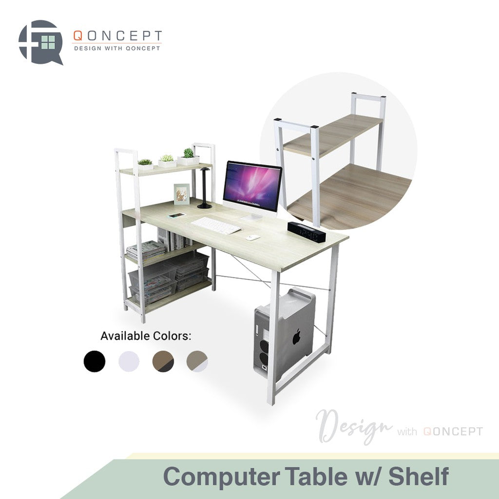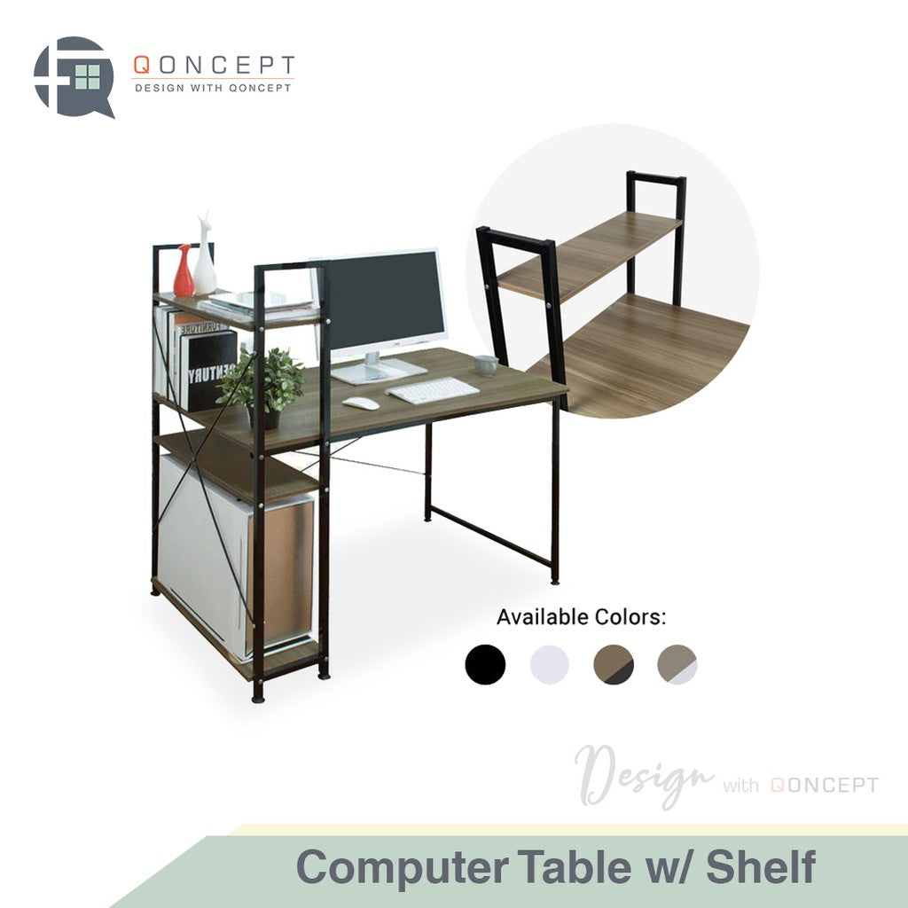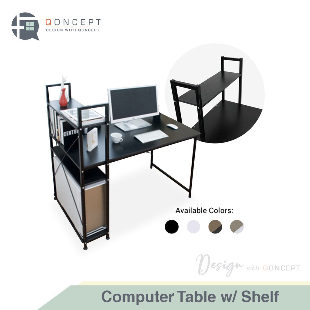Qoncept Furniture COMPUTER TABLE with SHELF Modern Home Office Desk & Study Table