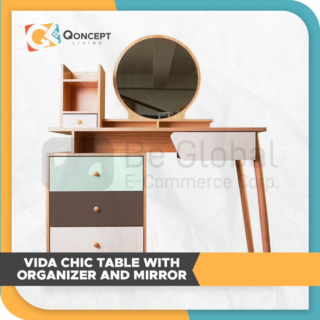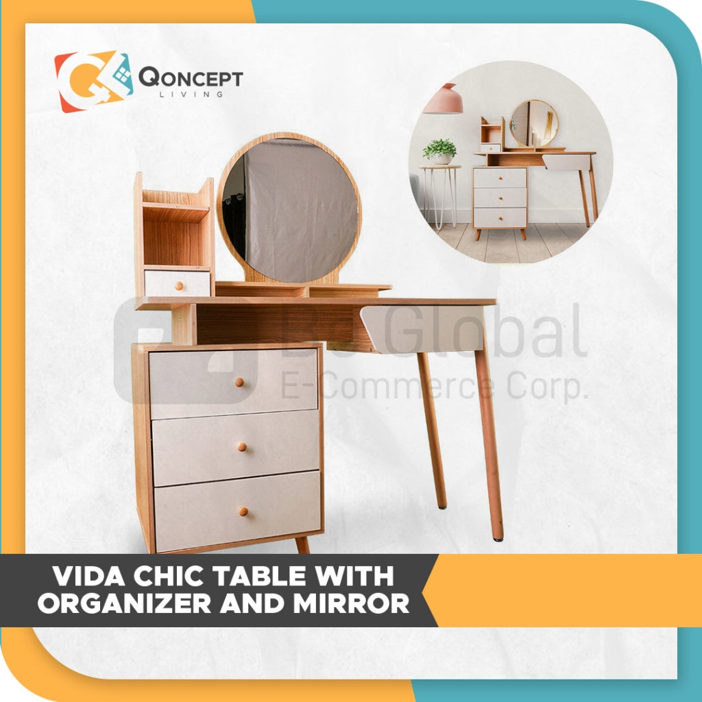 Qoncept Living Vida Wooden Chic Table With Organizer And Mirror 100 Cm