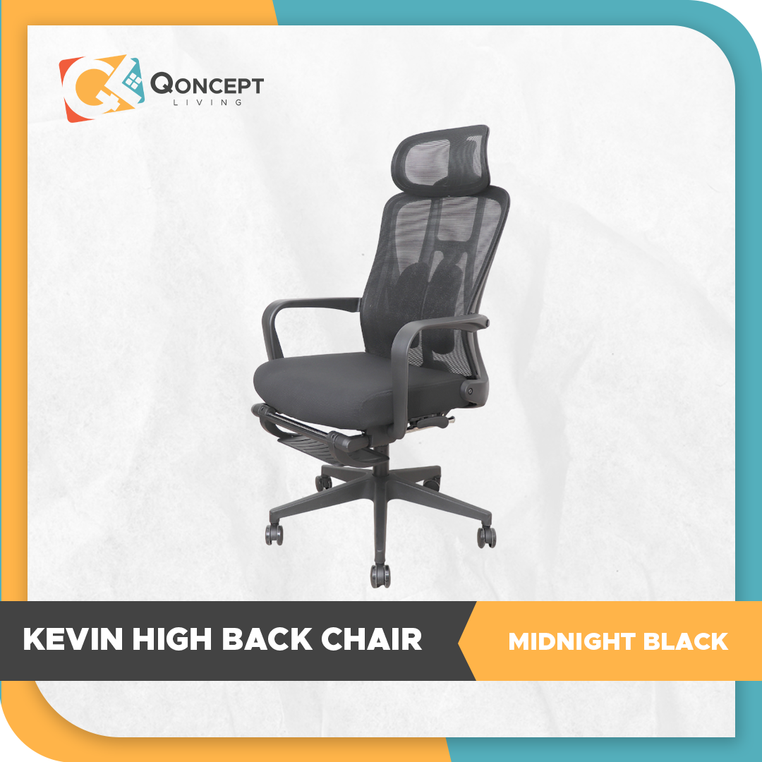 - Elegant Design: The Qoncept Kevin high back chair comes in a sleek midnight black finish. It features a classic design perfect for any setting. The chair includes a convenient leg rest, enhancing comfort during extended use.